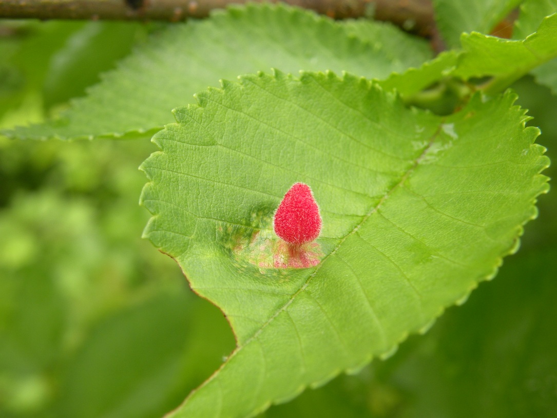Денис, яйца насекомых не выделяют в ткань растения ничего. Вероятно, это клещевой галл. Есть такое семейство Eriophyidae. См. http://en.wikipedia.org/wiki/Eriophyidae