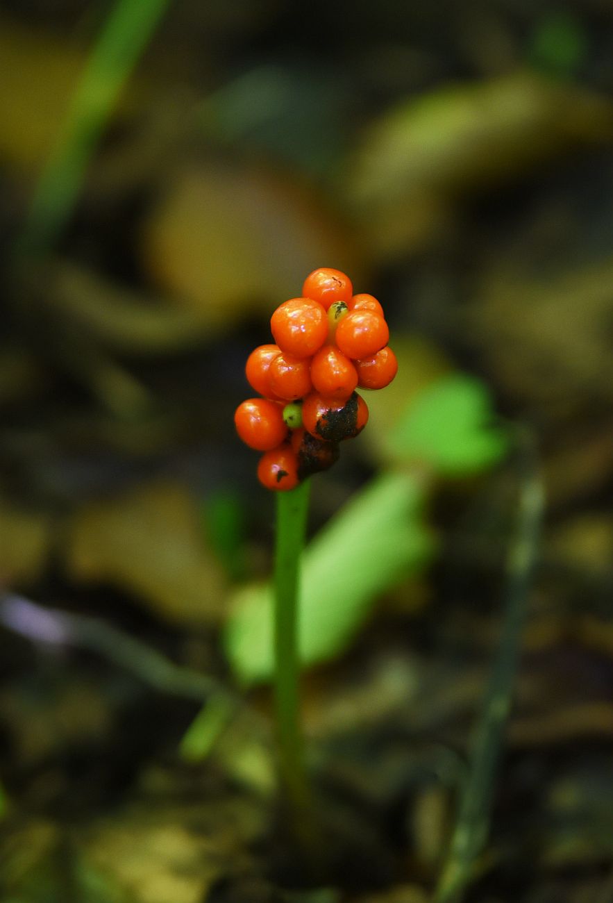 | Михаил Серебряный | Для уверенного определения Araceae (не только видов Arum) нужны крупные резкие планы соцветий (початков) со срезанным покрывалом. В плодах аронники очень плохо определяются |