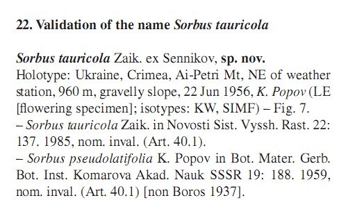 | Денис Мельников | В ФВЕ Sorbus taurica Zinserl. рассматривается как синоним другого вида этого же автора - Sorbus turcica Zinserl. Но в нашей базе (как и у Черепанова) это разные виды.