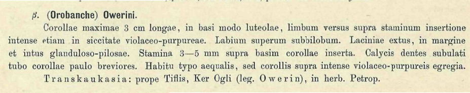 Растение названо в честь Александра Павловича Оверина. Он был топографом из Тифлиса, занимался местной флорой, вел активную переписку с Рупрехтом. |