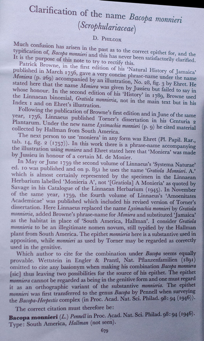 | Петр Косачев | Правильно Bacopa monnieri (L.) Pennell, 1946, Proc. Acad. Nat. Sci. Philadelphia 98: 94.