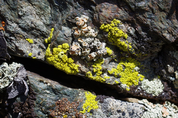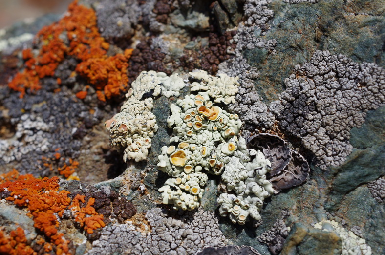 2 - Rhizoplaca peltata cf. 3 - Pleopsidium chlorophanum 4 - Candelariella vitellina s.l. 5, 6 - Rhizoplaca chrysoleuca 7 - Umbilicaria decussata 8, 9 - Rhizoplaca