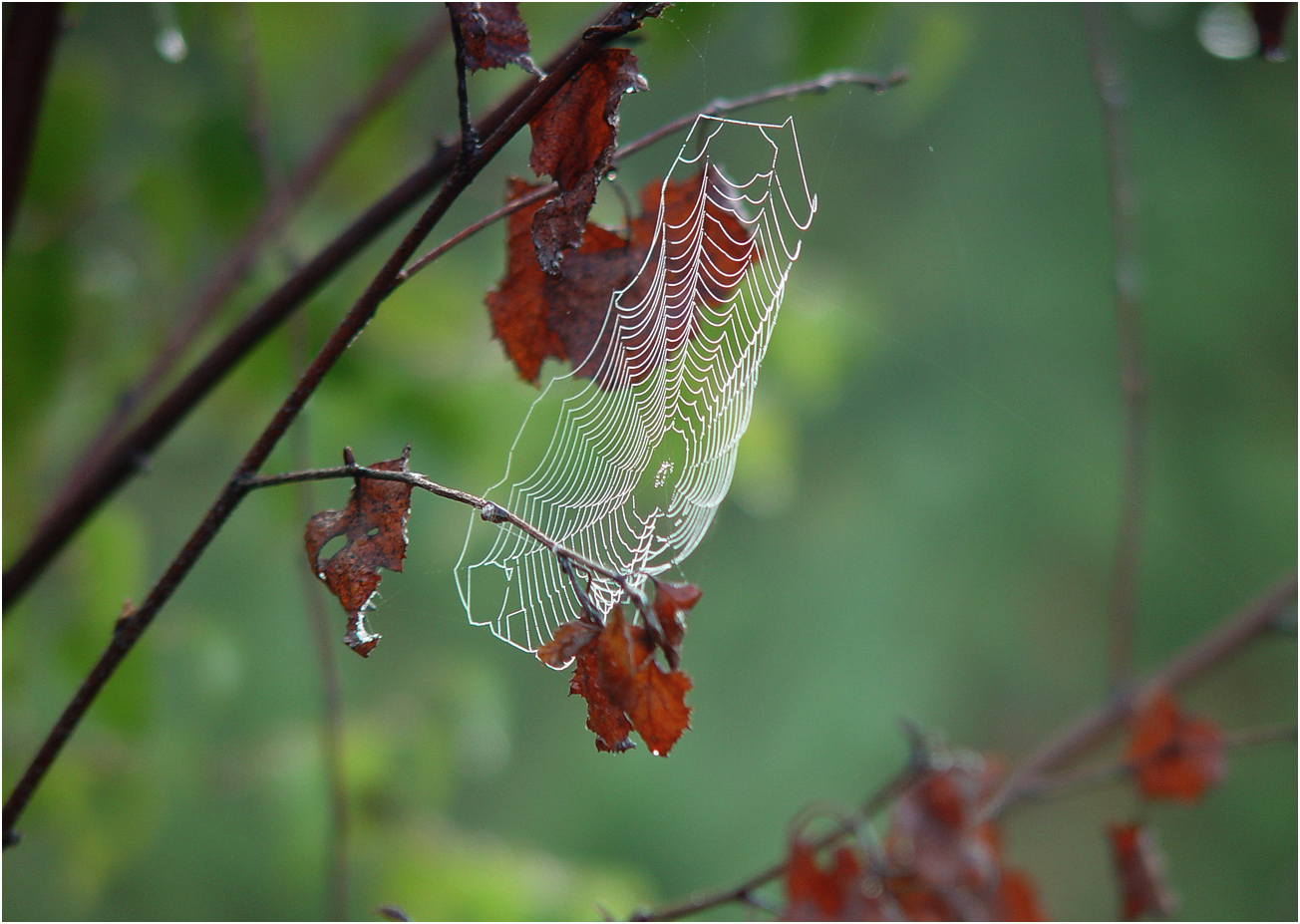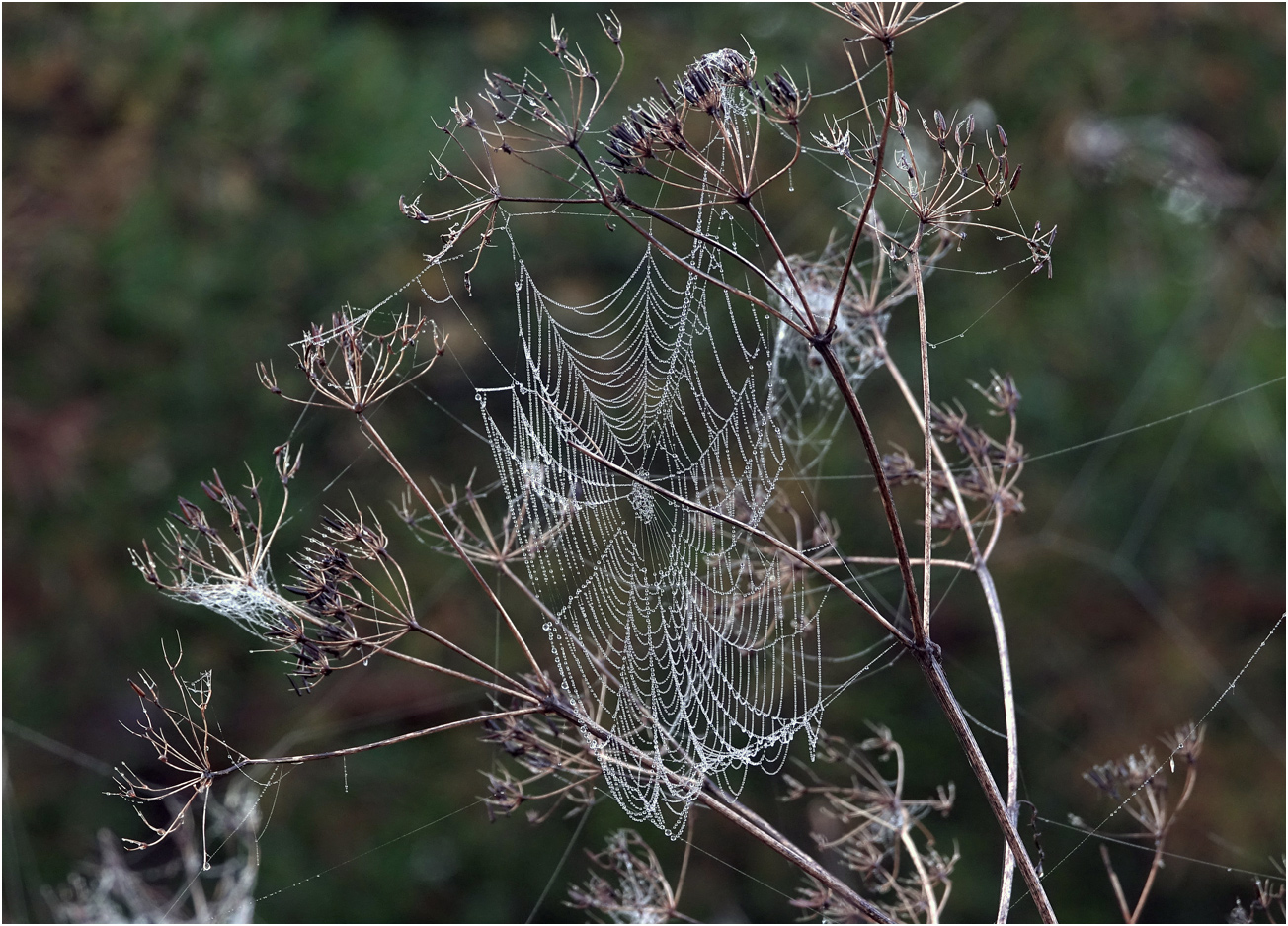 | Виталий Гуменюк | Из-за росы и снимал — иначе она невыразительно получается. Трудности при съемке были: утро, освещение слабое, выдержка длительная, а паутна с капельками росы колеблится от малейшего дуновения |