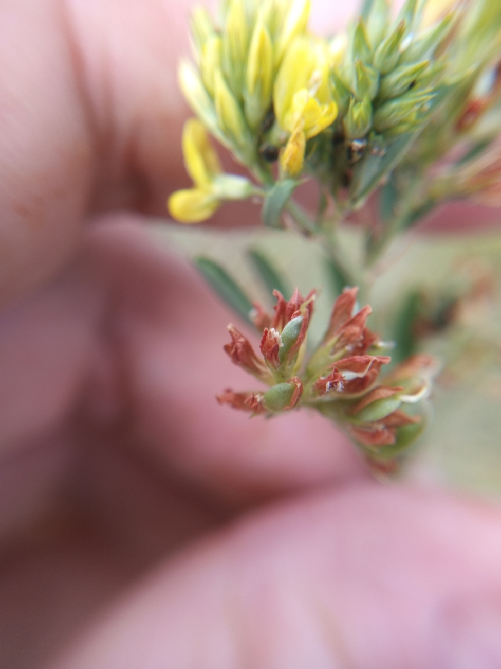 Здравствуйте. Обнаружил у соплодия люцерны серповидной краснеющие венчики. Это нормальный признак для этого вида? Стало интересно, потому что раньше не замечал подобного за falcata. У соседних растений вроде не увидел такого.