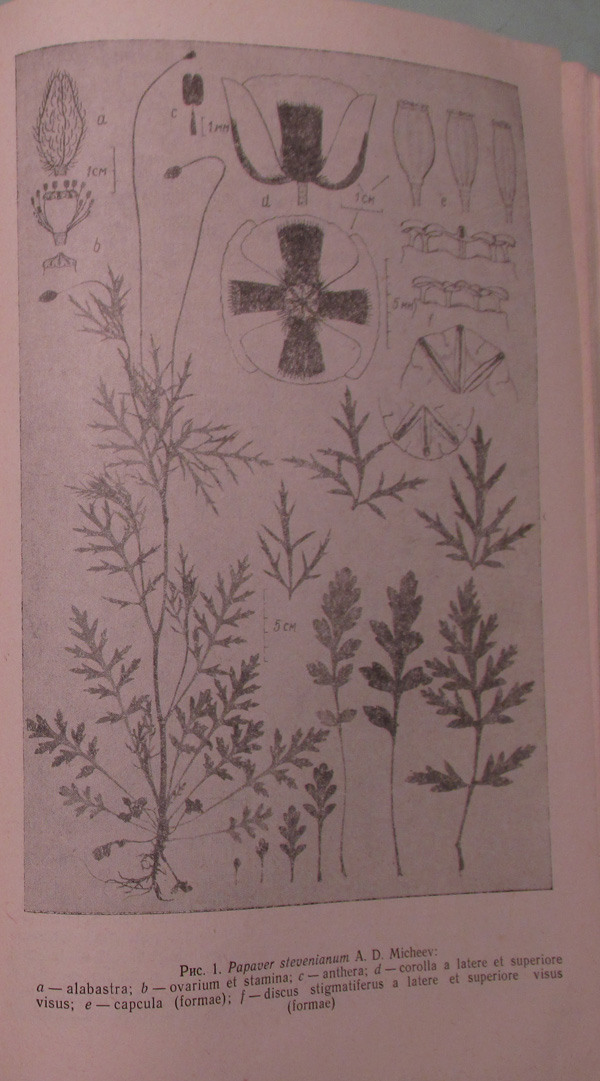 Здесь, как и у Papaver tichomirovii, тип состоит из материала, собранного в разные даты. В соответствии со ст. 8.2 Кодекса (см. пример 1), такой образец не может быть типом, необходимым в соответствии со ст. 37 для действительного обнародования названия после 1958 г. Получается, что Papaver stevenianum - nomen invalidum? |
