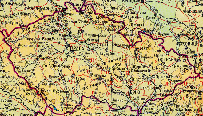 Физическая карта Чехии (времён ЧССР).