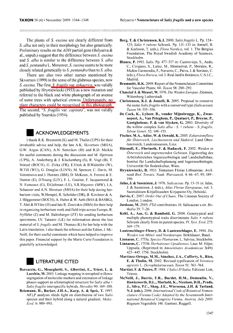 А раз уж на то пошло, то и то, что тут зовется Salix fragilis - теперь S. euxina и поэтому с var.sphaerica получается какая-то ерунда, потому что она осталась Salix fragilis, хотя должна бы быть тоже S. euxina var.sphaerica, но про нее, похоже, забыли?
