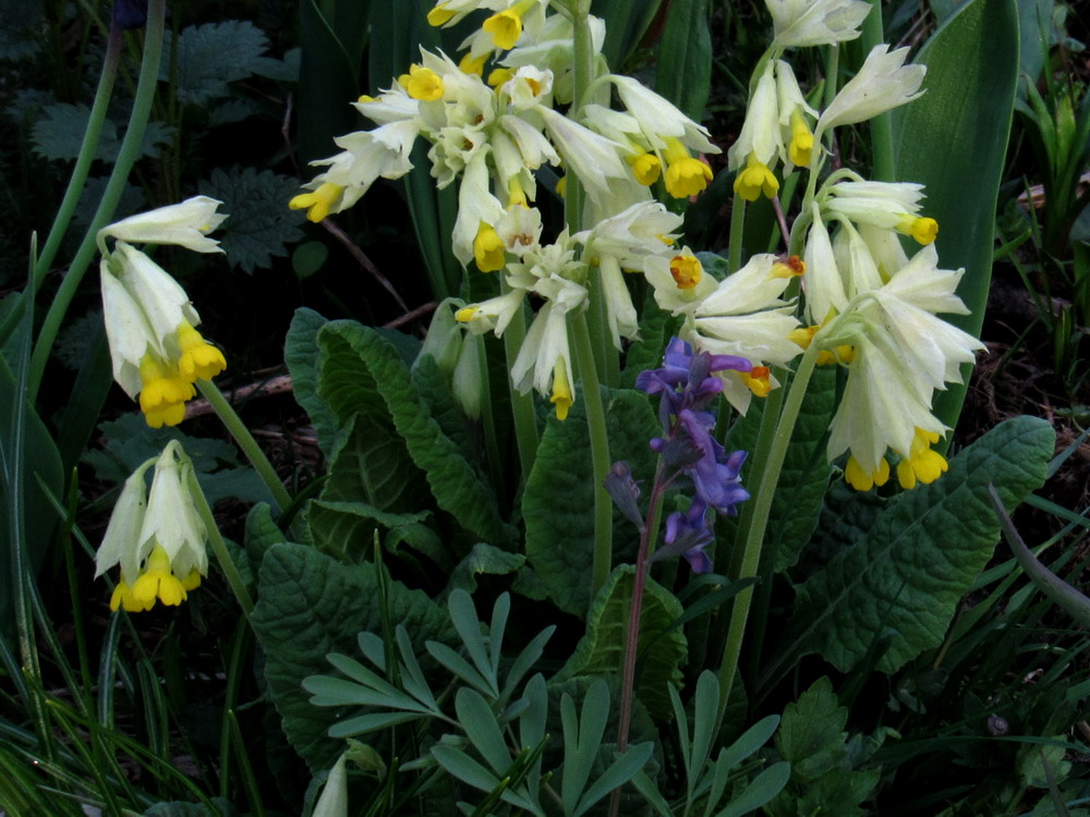 Еще цветут Primula macrocalyx, Brunnera sibirica, Waldsteinia и др.