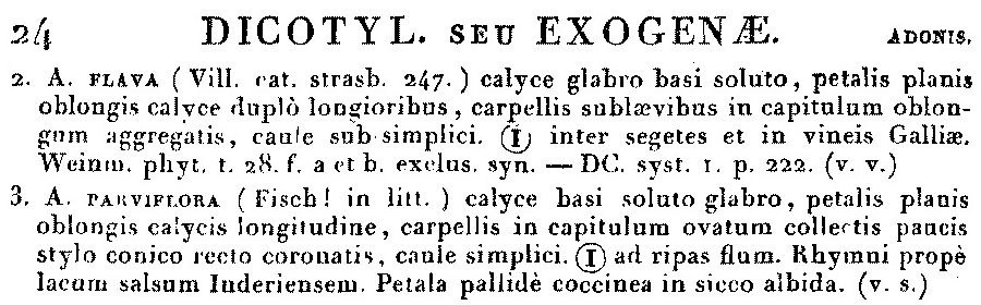Протолог Adonis parviflora Fisch. ex DC. (Prodromus Systematis Naturalis Regni Vegetabilis 1: 24. 1824):