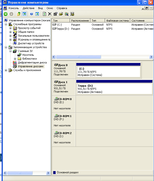 Панель управления -> Администрирование -> Управление компьютером -> Запоминающие устройства -> Управление дисками