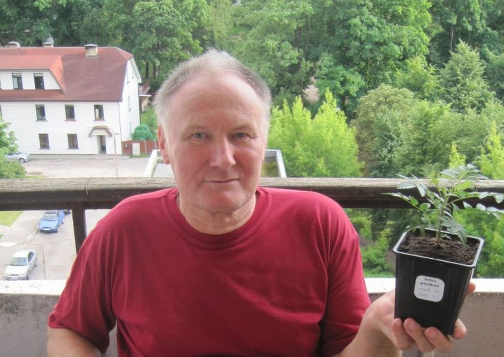 На снимках: Янис держит в руках 2,5 месячную рябинку Городкова! Семена посеил 18 апреля, а взошло 21 апреля . Эта самая крупная из 7 рябин.