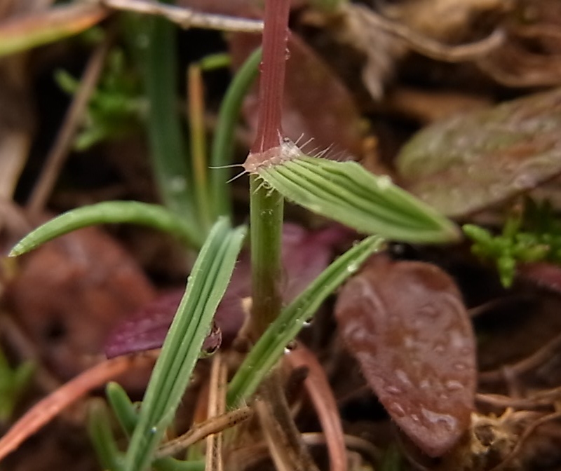 Нижние листья, которые растут эдакой кочкой, первый лист на цветоносе, с ворсинками на месте прикрепления, и сама метёлка - вроде в момент цветения... |