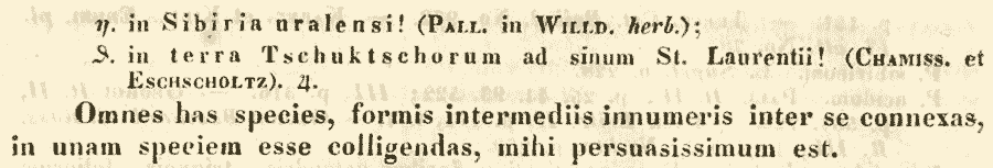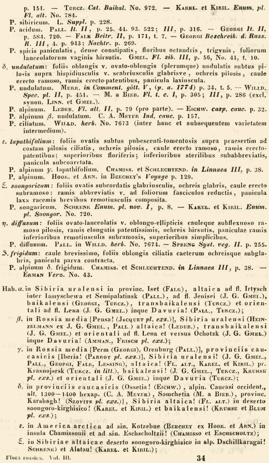 | Андрей Ковальчук | Почему именно к A. alpinum? Если формально и сводить в синонимы, то тогда уж к линнеевским P. divaricatum или P. ocreatum, которые были обнародованы раньше, чем P. alpinum. |