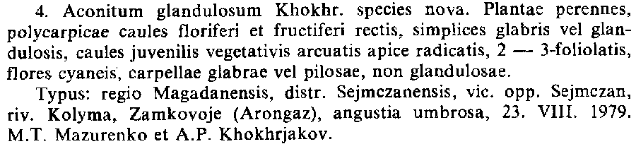 | Андрей Ковальчук | Протолог Aconitum glandulosum A.P. Khokhr., nom. illeg. (Флора Магаданской области: 347. 1985):