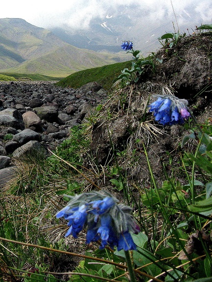 | Наталия Савкина | Определила это растение как Мертензия крылоплодная по поиску в интернете, но здесь не нашла такого. Снято на Камчатке, при подходе к перевалу Толуд, возле русла "сухой речки". 11.08.2011.