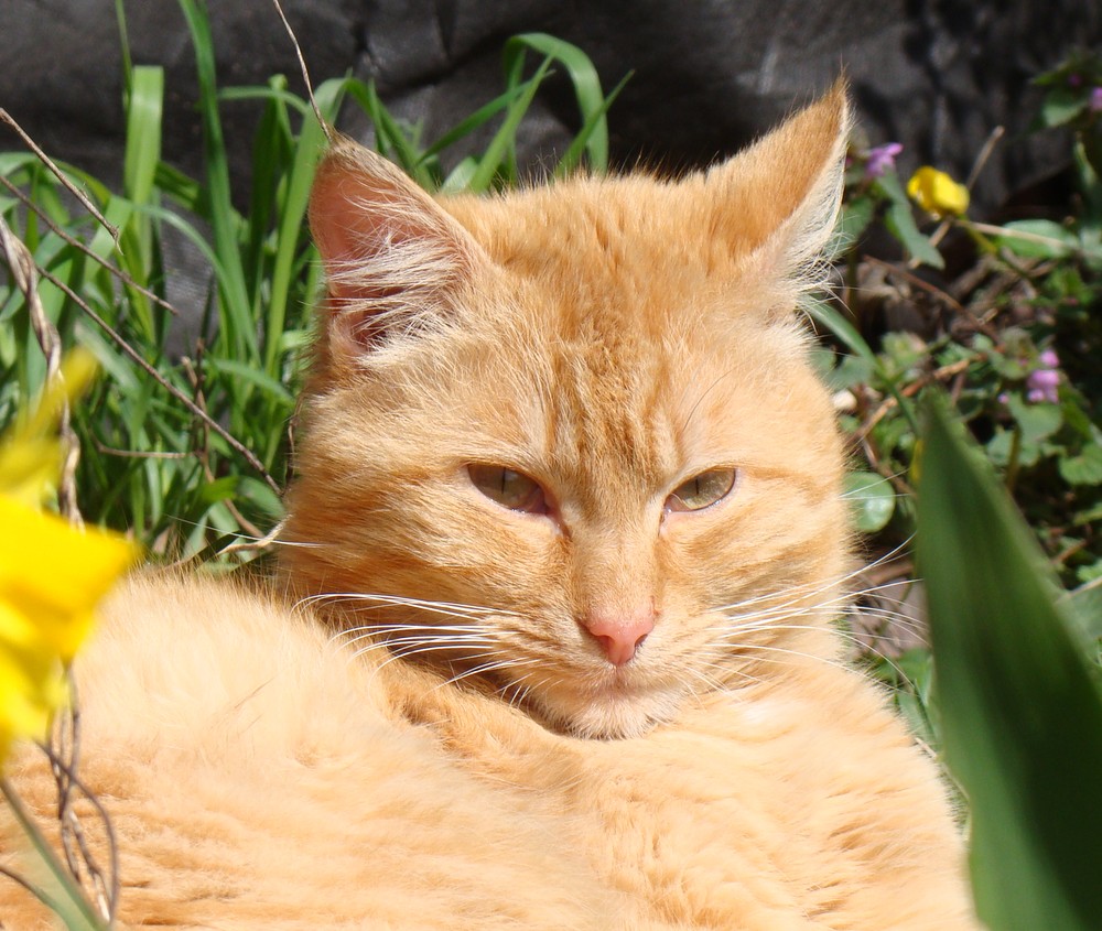 | Юрий Данилевский | Молодой котик приблудился и прикормился, с собакой вопросы решил, но в руки не дается. Наш чёрный любимец зимой под машину попал, эта наглая рыжая морда территорию осваивает.