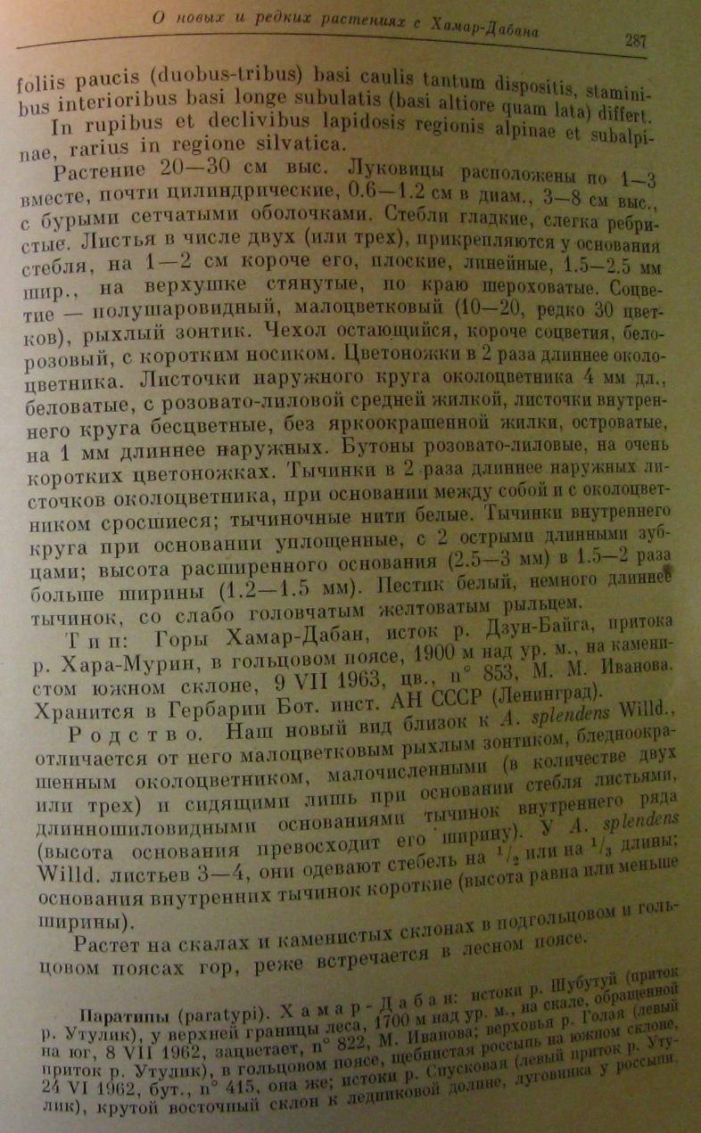 Растение было собрано в гербарий примерно как "вроде A.splendens, но что-то бледный какой, и соцветие рыхловатое, и листьев мало...и что он вообще тут в лесу делает?..." - при определении выяснилось, что это не A.splendens, но ближайший к нему вид - A.chamarense. Отличия - в форме тычинок (что не было видно при сборе) и как раз всё то, что "не понравилось" в A.splendens для этого растения - рыхлое и бледноокрашенное соцветие, небольшое количество листьев и расположение их только в нижней части стебля.. Описание - из статьи автора описания вида М.М.Ивановой (Новости систематики высших растений, 1965. - с. 282-292) - здесь вот кусочек описания именно его:
