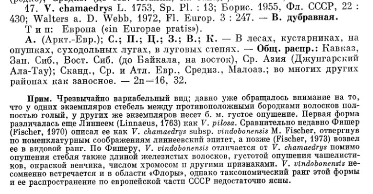 | Владислав Григоренко | Можно учесть точку зрения авторов статьи из предыдущего поста, понизив статус chamaedryoides и vindobonensis (прочие компоненты chamaedrys s/l на cайт пока не грузили) до подвидового, т.е. так, как это сделано в Euro+Med... |