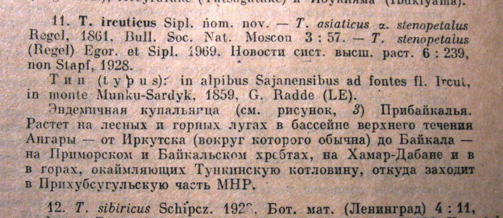 Обнародование названия T. ircuticus в НСВ (1972), т.9 : 170