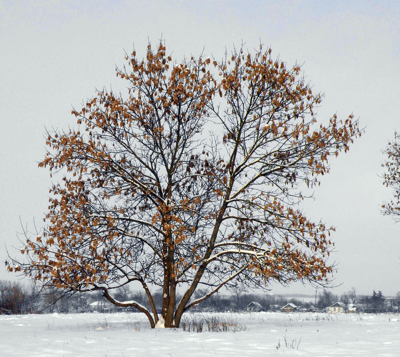 Целых два раза прочёл книжку Дэна Маргулиса "Photoshop LAB Color: загадка каньона и другие приключения в самом мощном цветовом пространстве" и, кажется, начал что-то осознавать. В рамках осознанного заметил, что на вроде как избыток жёлтого. Как раз один из случаев, выявлять и корректировать которые учит автор книги. Для проверки гипотезы об избыточной желтизне посмотрел на значение канала b (сине-жёлтый) на наиболее светлом участке картинки - снеге на нижней ветви дерева. Получил значение 81;0;8. Небо дало около 77;0;2. Эти цифры (значения в каналах освещённости, зелёно-пурпурном и сине-жёлтом показывают), что и снег, и небо явно уклоняются от нейтральности в желтизну (положительные значения в канале b). Т.о. гипотеза подтвердилась. Для коррекции создал корректирующий слой Curves, переключился в канал b и сдвинул жёлтый (правый) край кривой влево (чтобы убрать избыток жёлтого), а синий (левый) - совсем чуточку вправо (чтобы усилить жёлто-синий контраст). В результате на снегу на ветке получил значения около 81;0;-6 (слабо синеватый), а на небе около 77;0;-13 (существенно более голубой, что характерно для неба) Вот что вышло