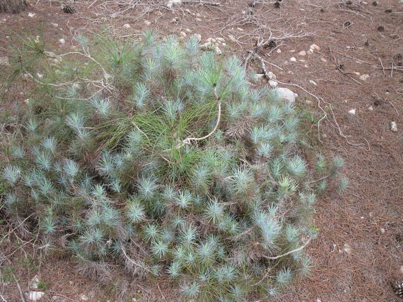 Выражаясь "бабушкиным" языком - нашла "сосновый куст" с голубоватой хвоей. Это что? Сеянец? Проросток? или молодое деревце, которому снесли башку и оно пустило корневую поросль?