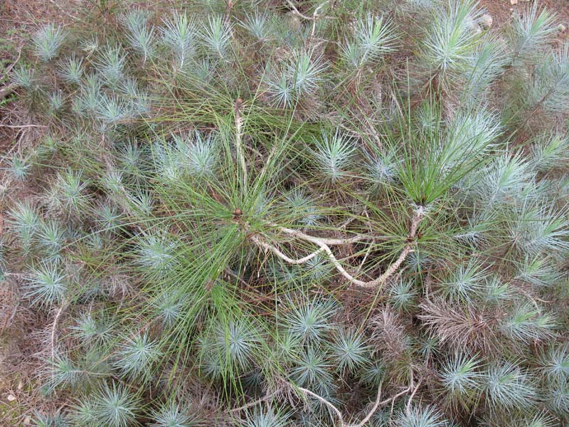 | Владимир Эпиктетов | Обычно одиночная голубая хвоя (ювенильная- молодая) образуется у некоторых теплолюбивых видов сосен (к примеру у Сосны итальянской) только у молодых растений, у сеянцев. В зависимости от условий до 3-4 лет , иногда до 7-8. Потом начинает расти обычная хвоя, свойственная для этого вида. Образование ювенильной хвои на взрослых деревьях -это исключение. Хотя именно с С. канарской не встречался. На фото трудно разобрать, возможно это группа сеянцев. |
