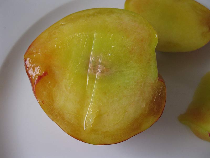 А косточка не отделяется!!! Теперь придётся покупать на базаре по пару штук от каждого сорта и экспериментировать с разрезанием, пока не повезёт напасть на нужный сорт с правильной косточкой.  |