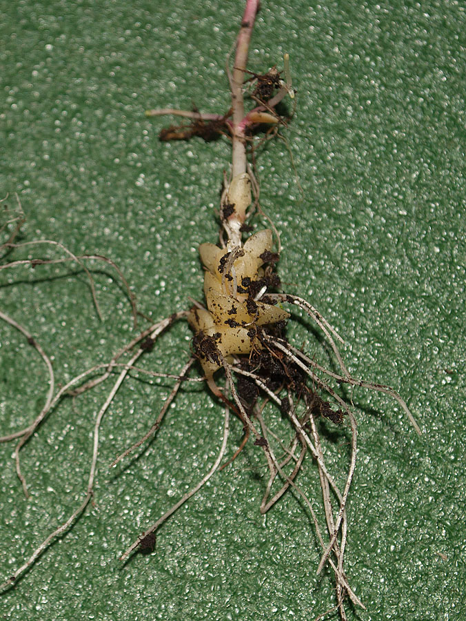 Если это действительно то, что я думаю (столоны с мясистыми чешуевидными листьями), то вроде как hornemannii. Однако листья были супротивные. И раскопки на месте ничего подобного не выявили. Самое "интересное" - были и растения без таких листьев: