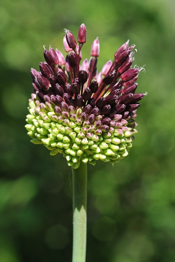 Не нашел указания в инете к какому виду принадлежит культивар 'Forelock' или возможно гибрид каких-то видов. По логике ближе всего к Allium longicuspis. Листья плоские, широкие. В бутоне соцветия поникающие, чехол с длинным носиком.