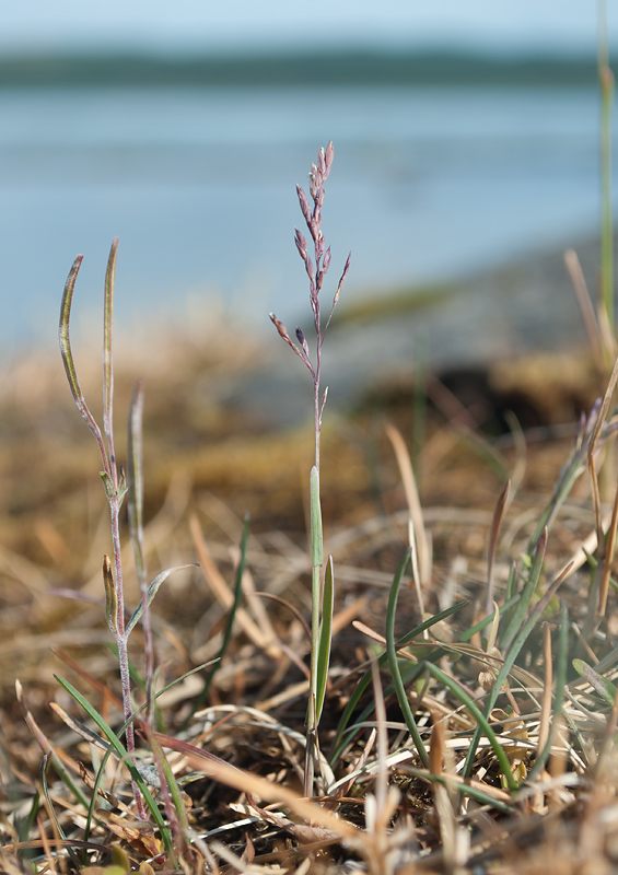 Ничего не понимаю. Бывают ли мятлики с одноцветковыми колосками? Если нет, у какого злака с одноцветковыми колосками имеется при основании цветковых чешуй такие же волокна, как у мятлика? Или опять я уродца подобрала... В принципе, берег залива, если что-то неположенное занесло, вполне могло чё попало вырасти... Вот, нашла его снимок.