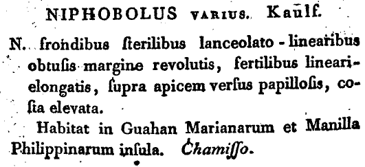 Протолог Niphobolus chamissonianus C. Presl (Tentamen Pteridographiae: 201. 1836):