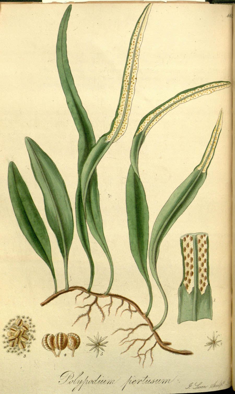 Типовой гербарный образец (изолектотип) Polypodium pertusum Roxb. ex Hook. https://plants.jstor.org/stable/10.5555/al.ap.specimen.br0000006984809 Протолог Polypodium pertusum Roxb. ex Hook. (Exotic Flora 3(23): 162. 1825 [Jun 1825]):