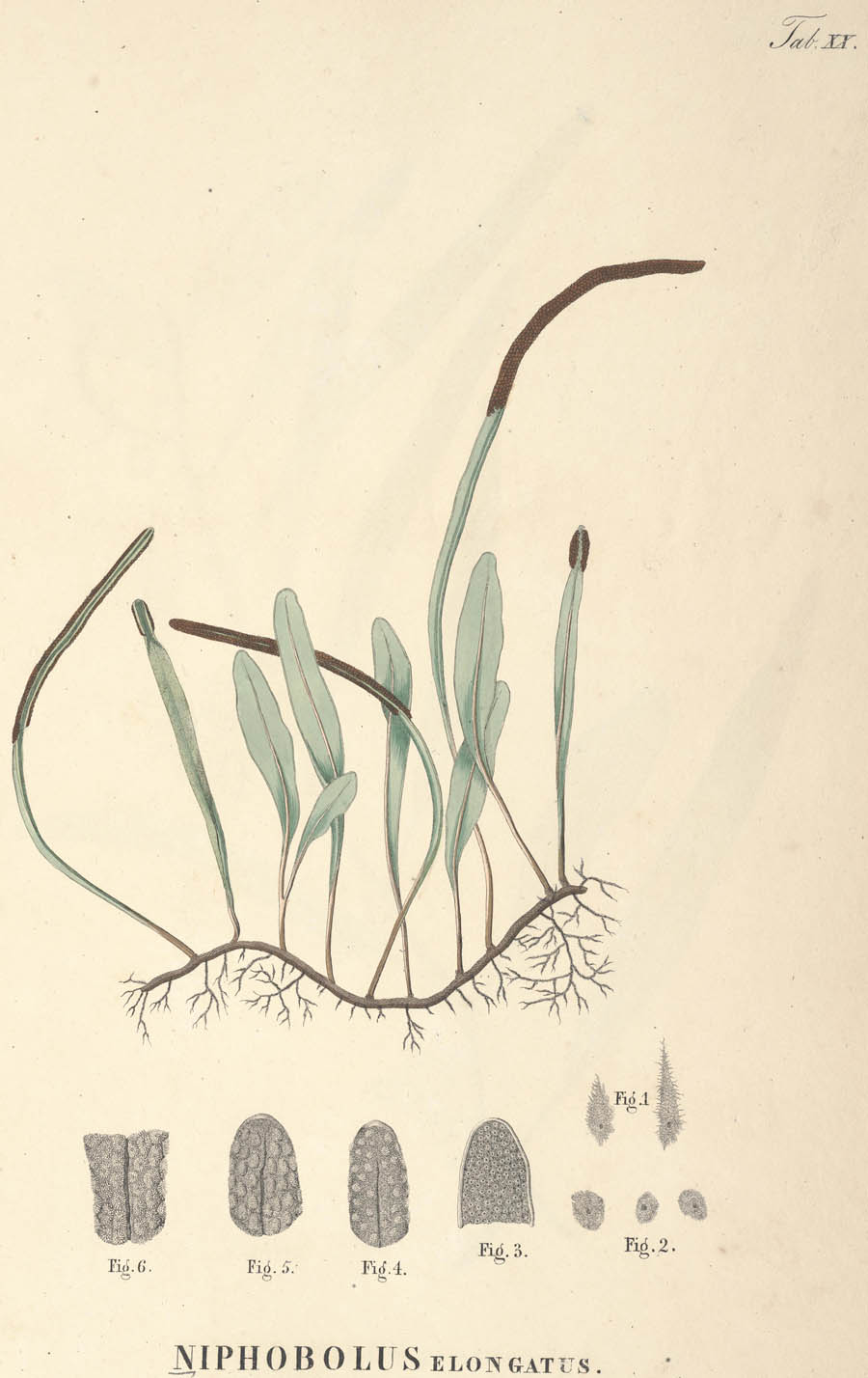 Иллюстрация Niphobolus elongatus Blume (Flora Javae nec non insularum adjacentium 2(5–6) (Filices): t. XX. 1829):