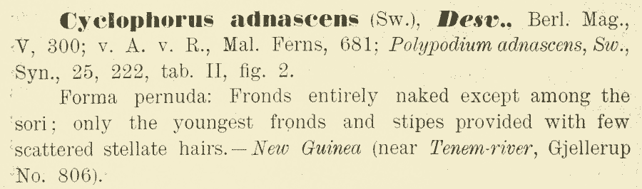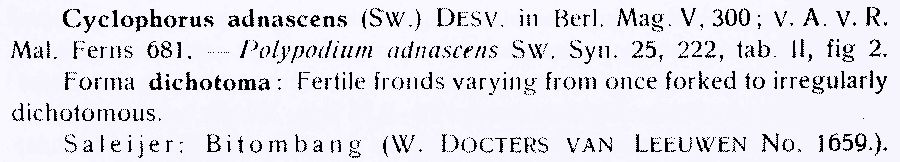 | Андрей Ковальчук | Протолог Cyclophorus adnascens var. minor Alderw. (Malayan Ferns 681. 1908):