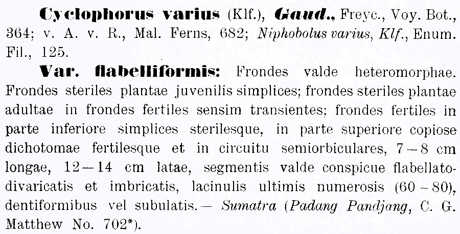 | Андрей Ковальчук | Протолог Cyclophorus varius var. flabelliformis Alderw. (Bulletin du Jardin Botanique de Buitenzorg, sér. 2, 16: 57. 1914):