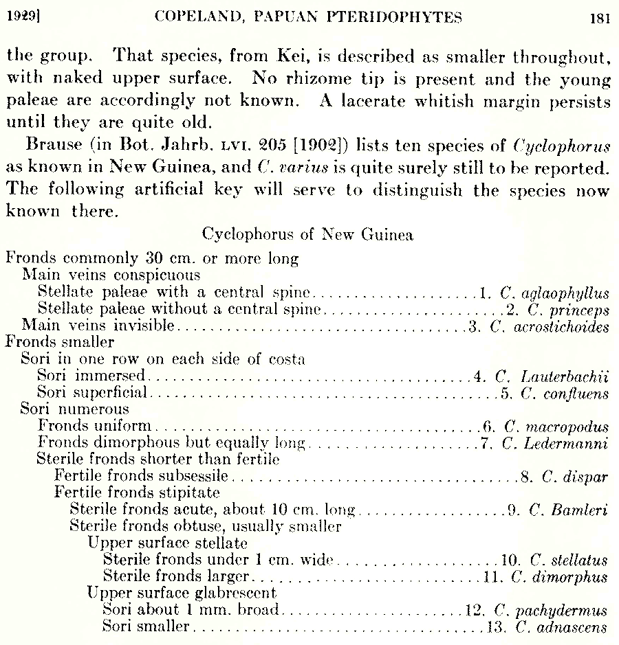 Протолог Cyclophorus stellatus Copel. и Cyclophorus dimorphus Copel. (Journal of the Arnold Arboretum 10(3): 179–181. 1929):