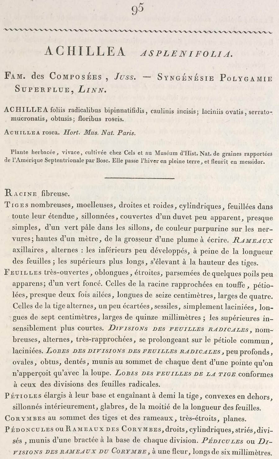 Протолог Achillea aspleniifolia Vent. (Description des Plantes Nouvelles et peu connues, cultivées dans le jardin de J. M. Cels 10: t. 95. 1803 [21 Feb 1803]):