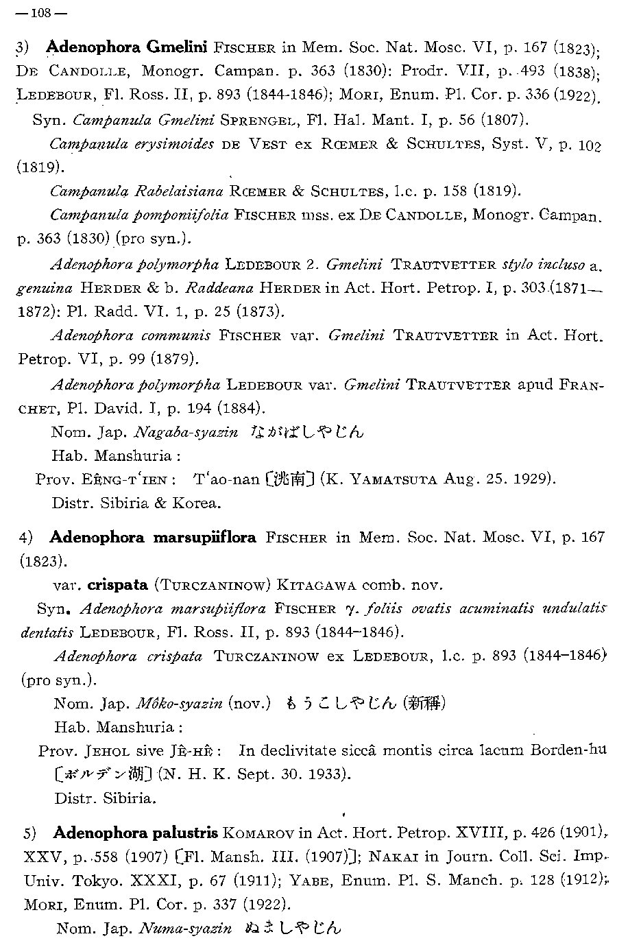 | Андрей Ковальчук | Протолог Adenophora marsupiiflora var. crispata Turcz. ex Kitag. (Report of the first scientific expedition to Manchoukuo sect. IV, part II. Contributio ad cognitionem florae Manshuricae: 108. 1935):