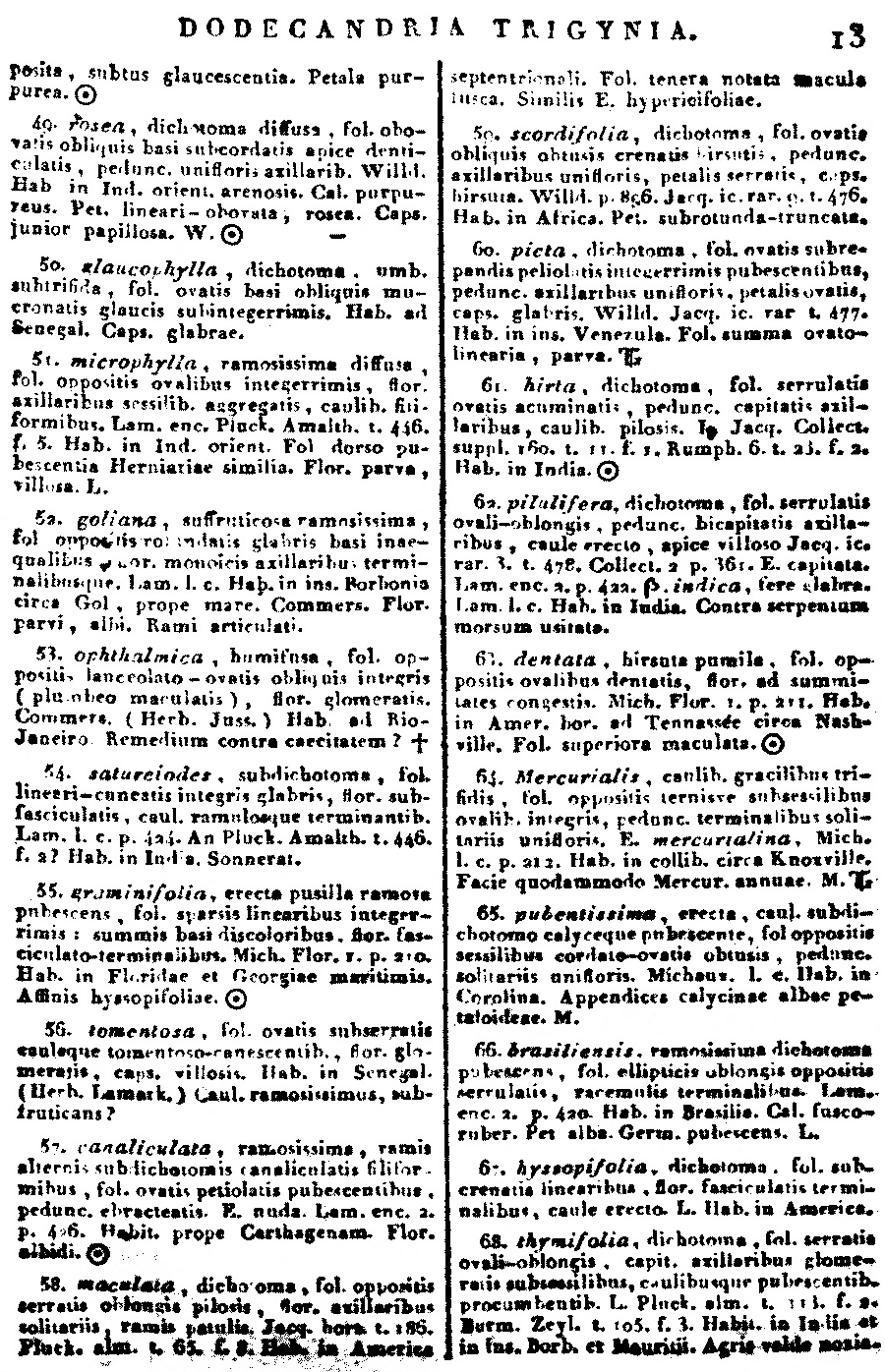 Протолог Euphorbia nudiflora Lam. (Encyclopédie Méthodique, Botanique [J. Lamarck & al.] 2(2): 426. 1788 [14 Apr 1788]):