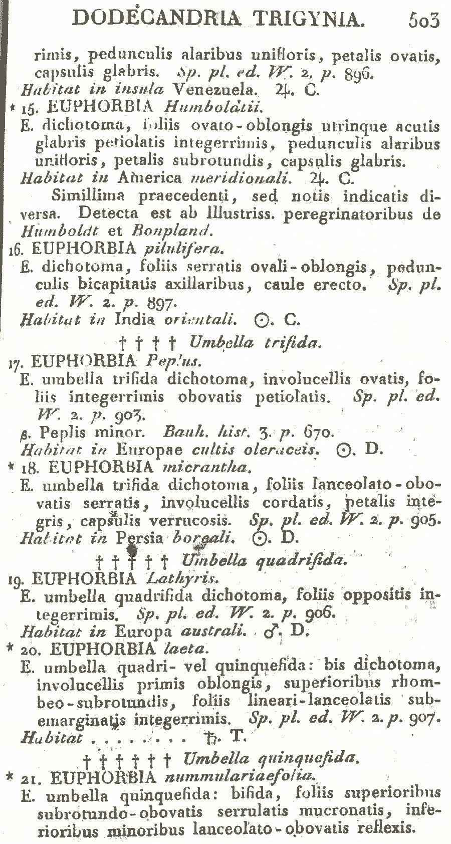 Протолог Euphorbia humboldtii Willd. (Enumeratio Plantarum Horti Botanici Berolinensis 1: 503. 1809 [Apr 1809]):
