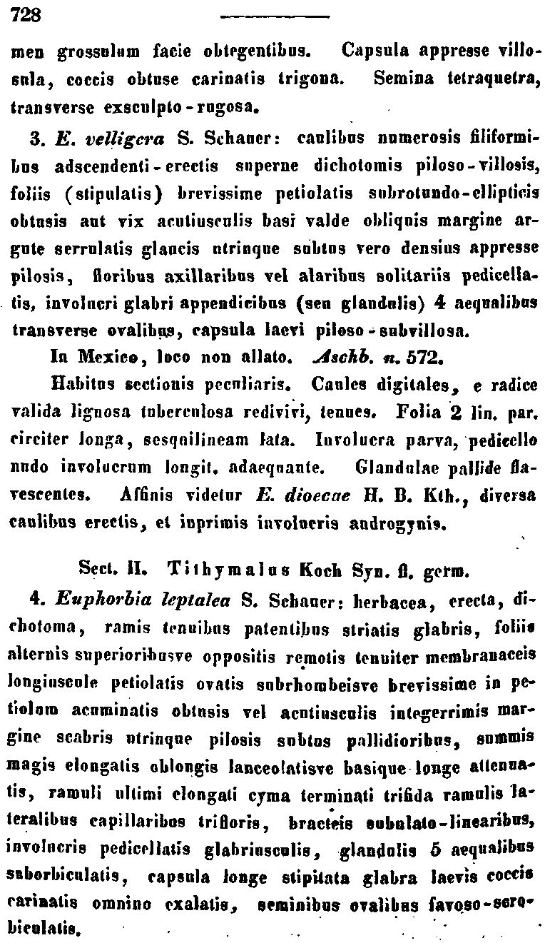 Протолог Euphorbia leptalea S. Schauer (Linnaea 20: 728–729. 1847):