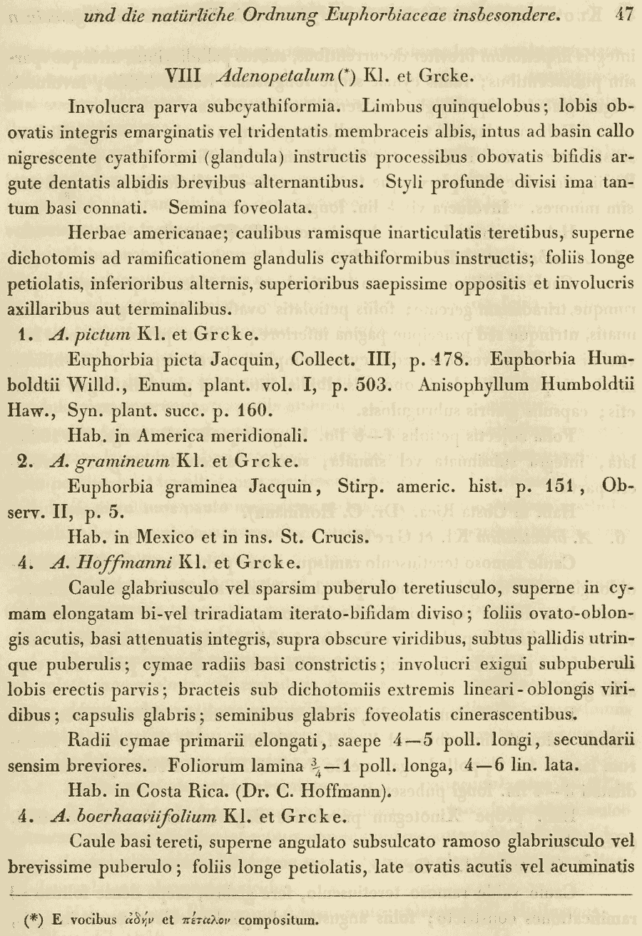 | Андрей Ковальчук | Протолог Adenopetalum discolor Klotzsch & Garcke и Adenopetalum pubescens Klotzsch & Garcke (Abhandlungen der Königlichen Akademie der Wissenschaften zu Berlin 1859: 49. 1860), Adenopetalum irasuense Klotzsch & Garcke и Adenopetalum mexicanum Klotzsch & Garcke (Abhandlungen der Königlichen Akademie der Wissenschaften zu Berlin 1859: 50. 1860):