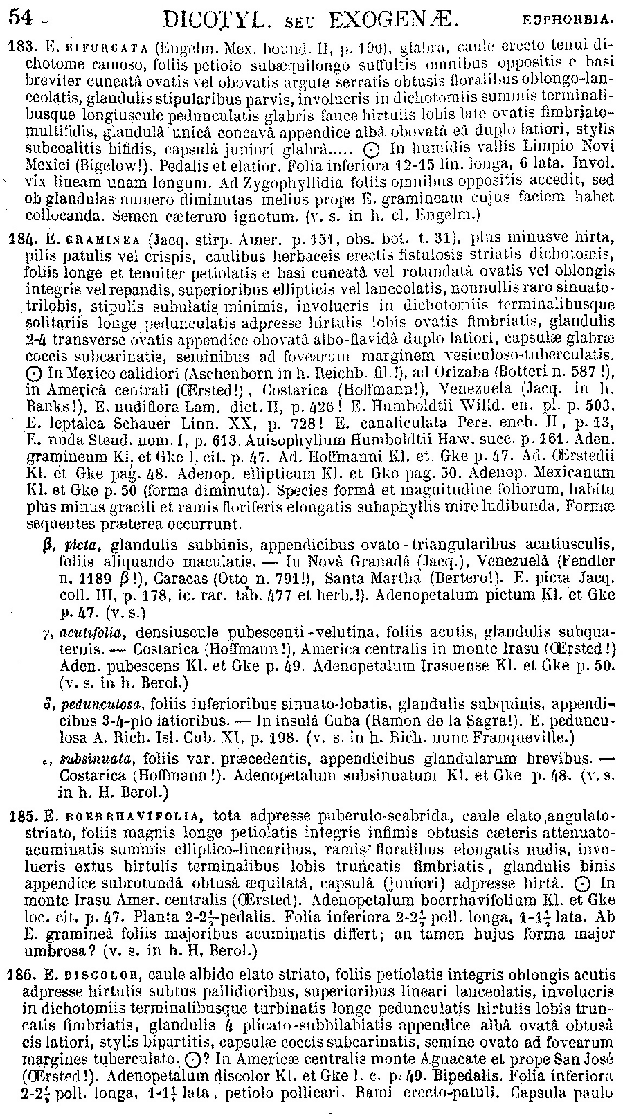 | Андрей Ковальчук | Не совсем понятна ситуация с комбинацией Eumecanthus ariensis (Kunth) Klotzsch & Garcke - в Tropicos она приводится в числе синонимов Euphorbia graminea Jacq., но её базионим - Euphorbia ariensis Kunth - имеет статус самостоятельного вида. Возможно, имеет смысл удалить её из списка синономов.