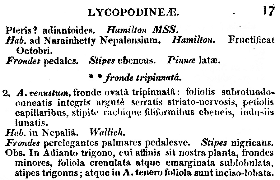 Протолог Adiantum venustum D. Don (Prodromus Florae Nepalensis 17. 1825):