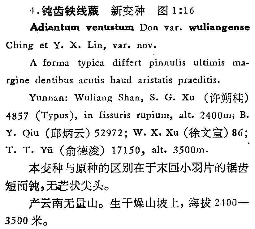 | Андрей Ковальчук | Протолог Adiantum venustum var. wuliangense Ching & Y. X. Lin in Y. X. Lin (Acta Phytotaxonomica Sinica 18(1): 104, pl. 1, f. 16. 1980):