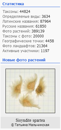 | Дмитрий Орешкин | В базе данных - 45000 таксонов. |