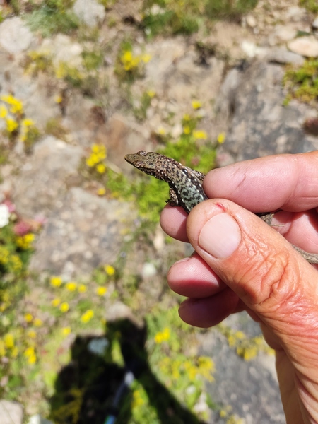 Скальная ящерица Darevskia alpina в долине реки Черек Безенгийский. Пока предположительно. Взял пробы для генетического анализа. Название рода Darevskia - за вклад в изучение ящериц этой группы герпетолога Ильи Сергеевича Даревского (моего научного руководителя).