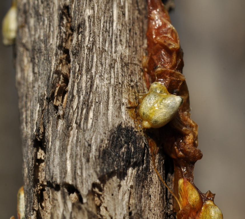 | Анна Малыхина | Может семена омелы? У белой они такие -  , а это может Viscum coloratum? |
