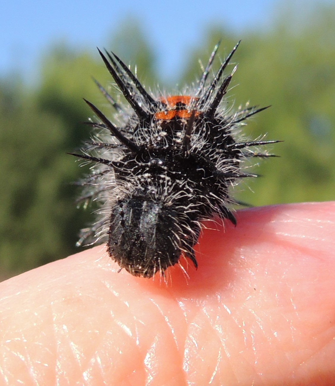 | Светлана Чурякова | Гусеницу поймала. Траурница. Дорогу переходила. Ну, там грунтовка, собственно. лесокомбинат овраг 029 (2).JPG |