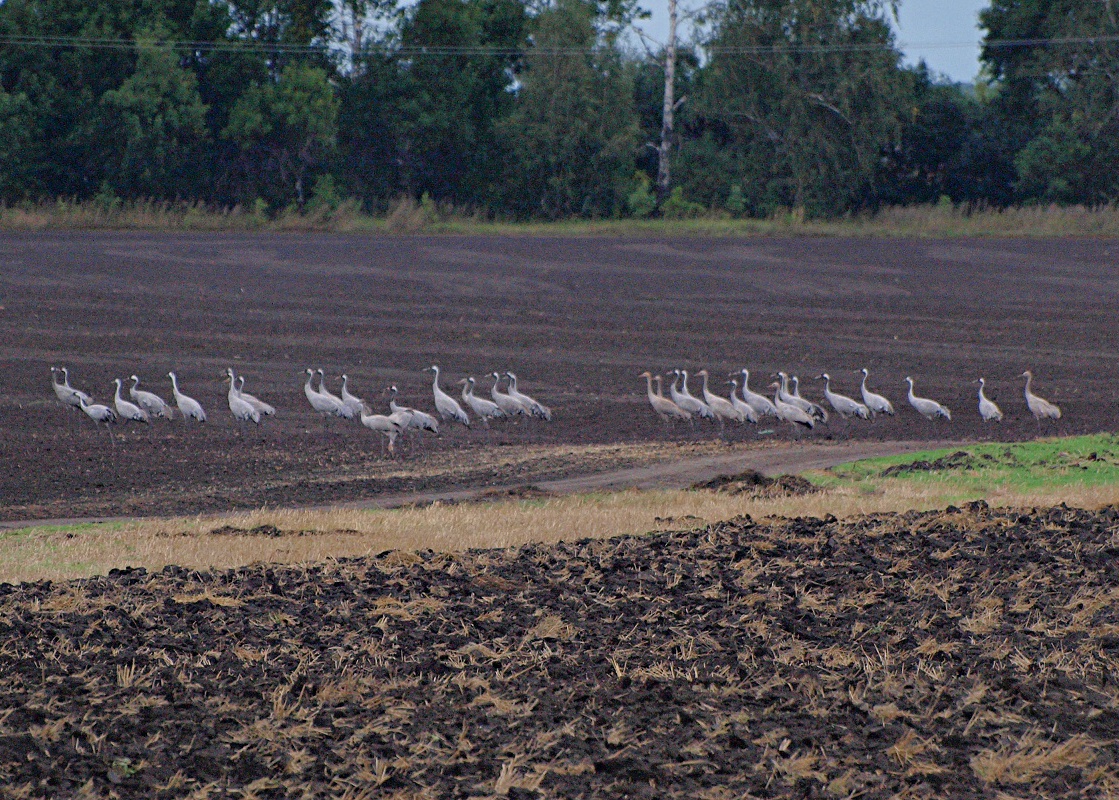 | Денис Карацуба | Опять возвращаюсь к орнитологической теме. На снимке молодой кобчик, вставший на крыло в уходящем сезоне, а также стая журавлей, остановившаяся на отдых на вспаханном поле. Фотографии сделаны из машины. Ездили со знакомыми орнитологами-любителями. Я снимал "пивной банкой" — объективом с ф.р. 300 мм. На моём Олимпусе с кропом 2 это даёт внушительные 600 мм. Как видим, всё равно мало. Вообще, фотоохотник из меня никудышный. На то, чтобы подкрадываться к объекту или караулить в засидке у меня никогда терпения не хватало. По этой же причине и рыбалку никогда не любил. Через пол часа всё надоедало. Мне нужен активный поиск. Растения для этого больше подходят. P9102574_обработано_обработано.JPG |